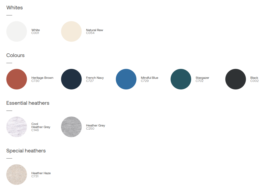 Fabric & composition Single jersey 100% organic open-end cotton