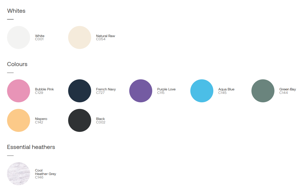 Fabric & composition Single jersey 100% organic ring-spun combed cotton